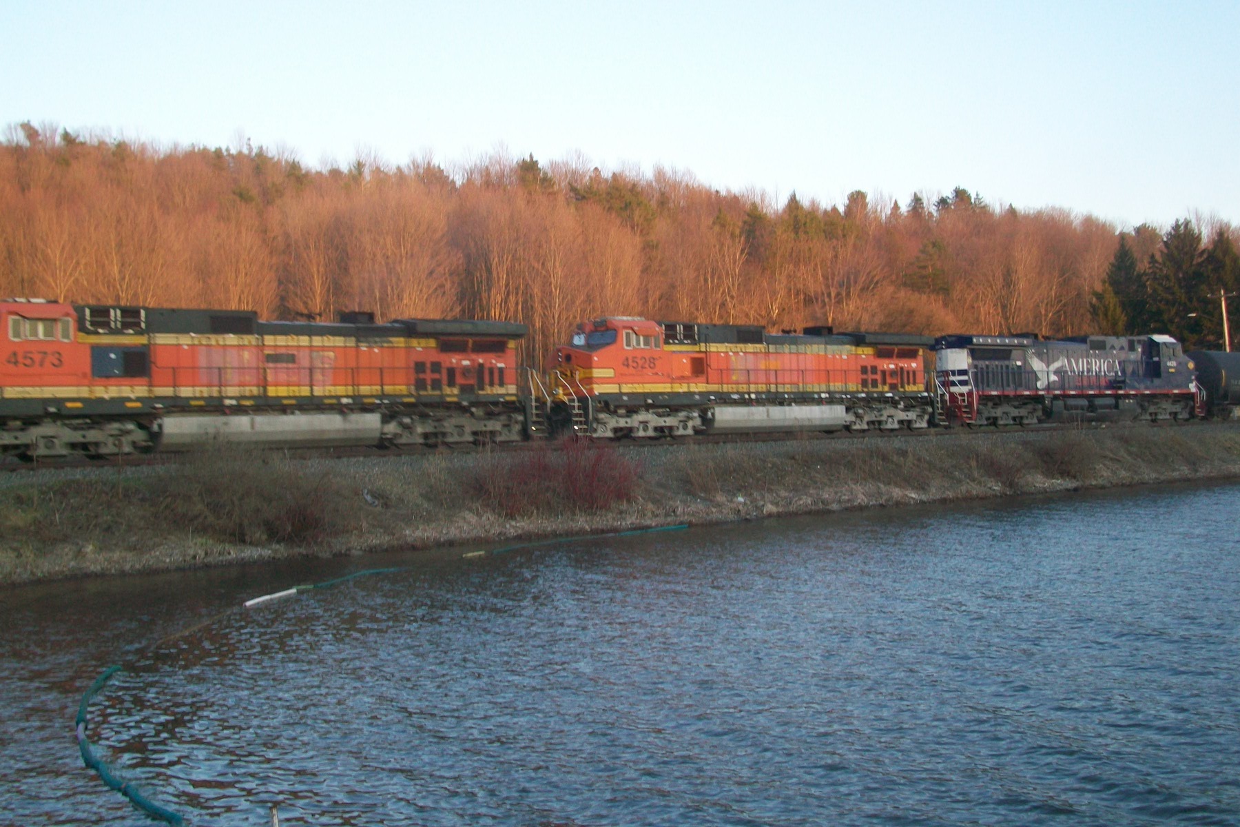 Buffalo & Pittsburgh RR: Lime Lake, NY SIBF running along Lime Lake. I goofed on this pic. UGH Photographed by Chris Bigham, April 8, 2026. Added to the photo archive by Chris Bigham, April 13, 2026. Railroad: Buffalo & Pittsburgh. » Contact the person who posted this photograph.