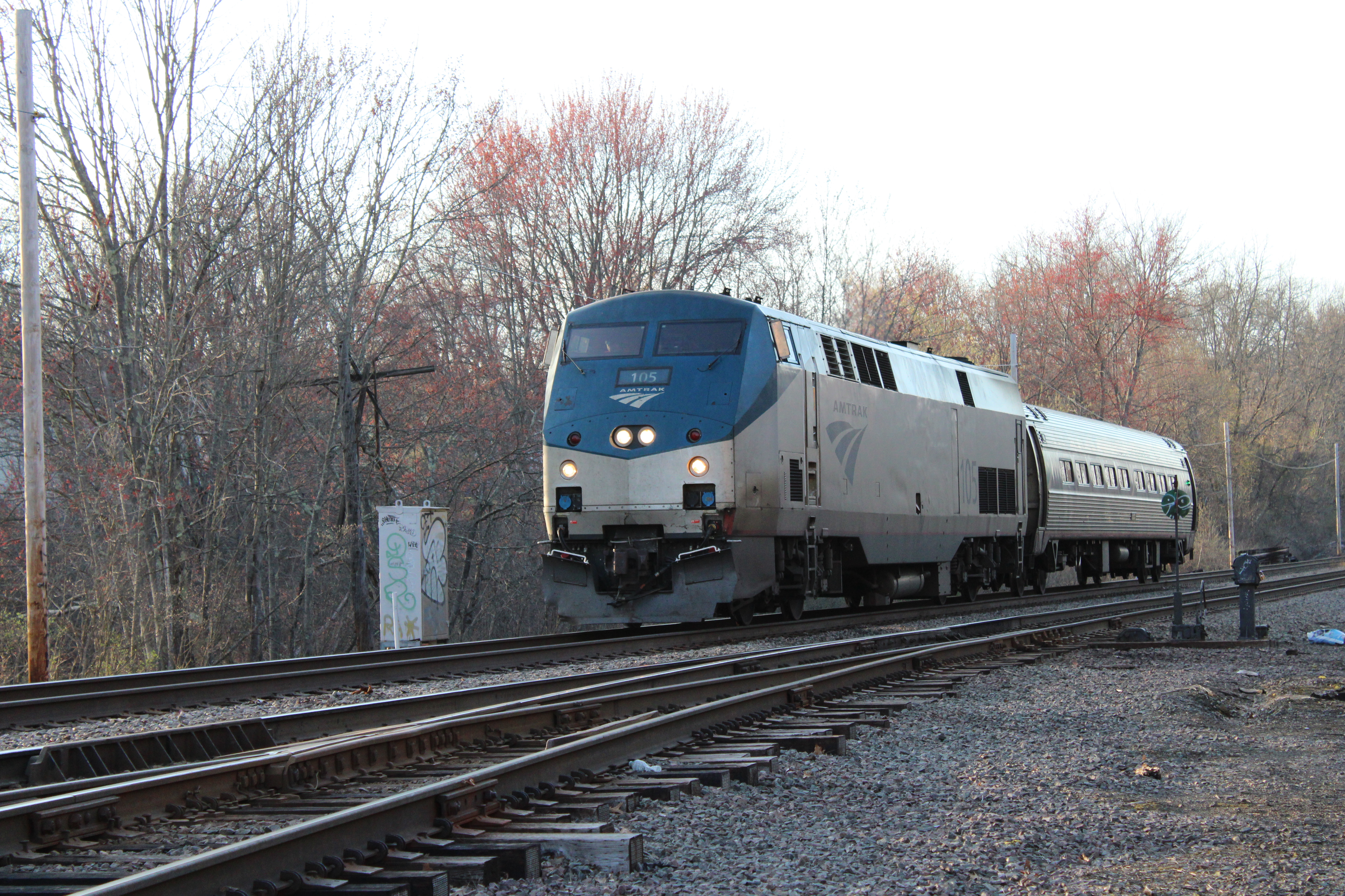 Amtrak extraContinues west from CPF-HA in Haverhill MA with AMTK 105 and a coach.