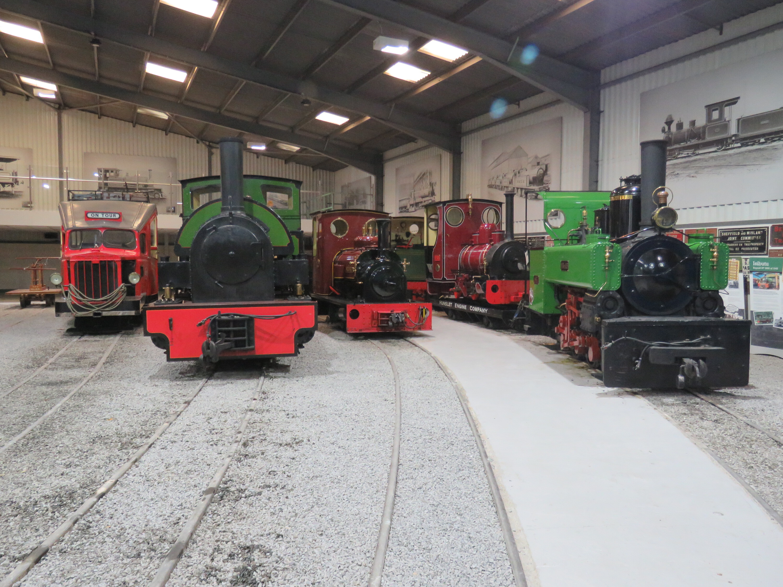 A view inside the narrow gauge roundhouse At Statfold Barn Leisure Park. Photographed by Adrian Brodie, July 31, 2025. Added to the photo archive by Adrian Brodie, April 15, 2026. Railroad: Statfold Barn Leisure Park (UK). » Contact the person who posted this photograph.