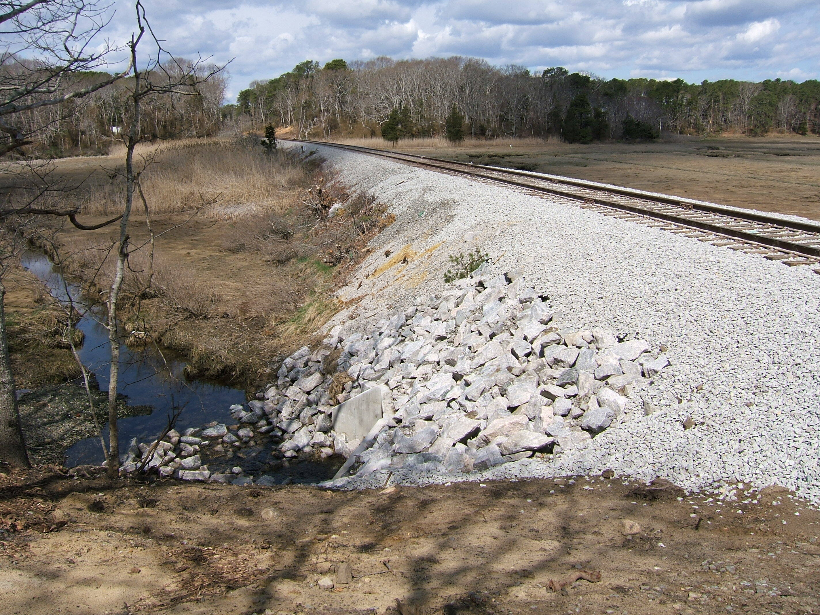 New Culvert on Cape Main line MP 63.22 Culvert replacement in Sandwich MA on Cape Main MP 63.22 Photographed by John A Speers, April 20, 2026. Added to the photo archive by John A Speers, April 20, 2026. Railroad: Mass Coastal. » Contact the person who posted this photograph.