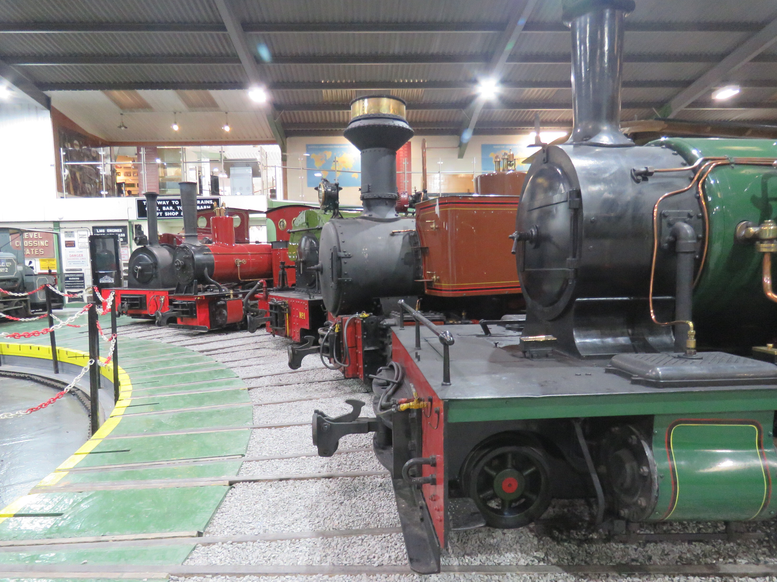 Around the turntableIn the narrow gauge roundhouse at Statfold Barn Leisure Park.