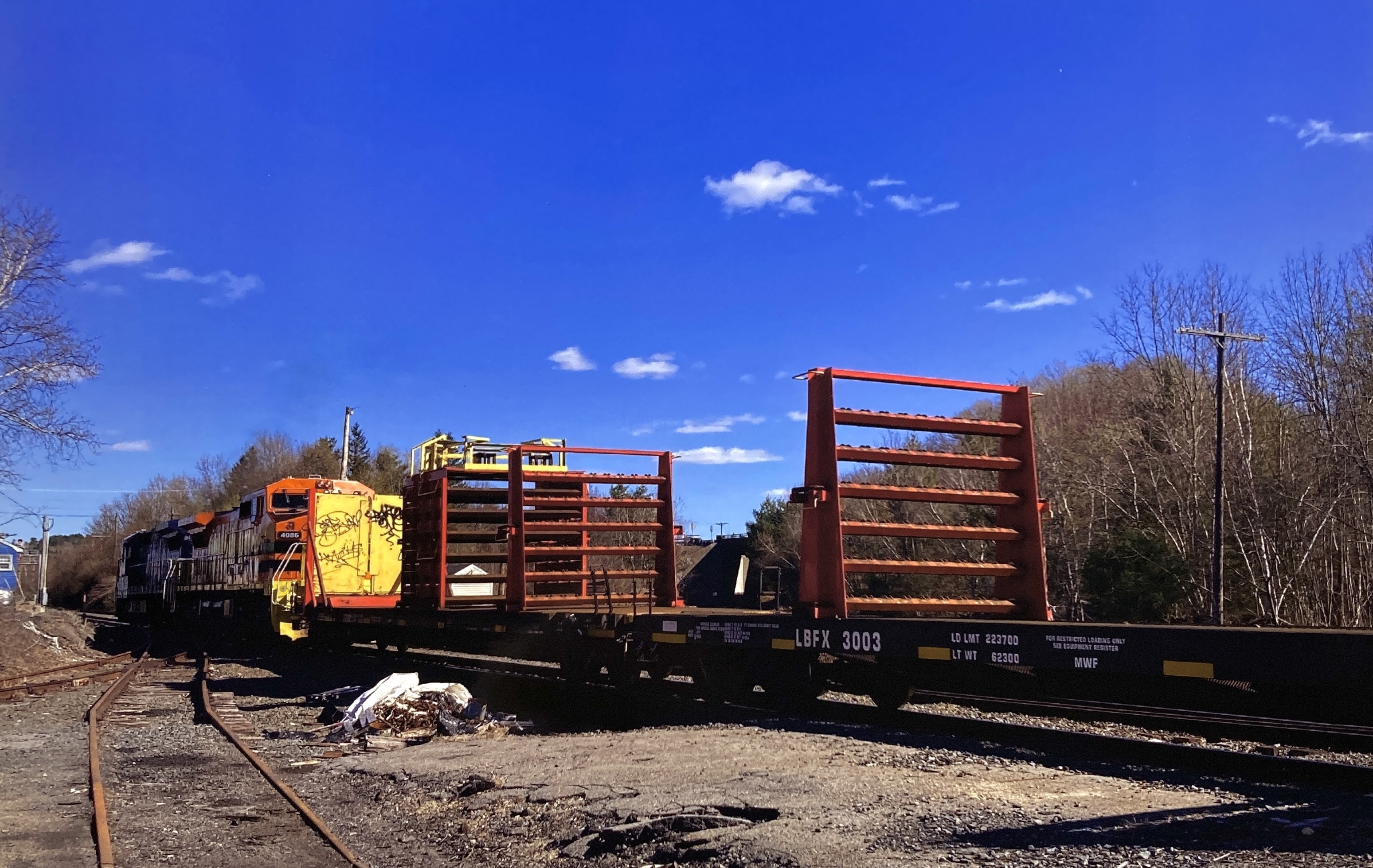Gardner MaEmpty rail train pulling up to the signals to wait for B101 to come up the hill. Not sure where the rail was dropped, if anybody knows please feel free to comment.