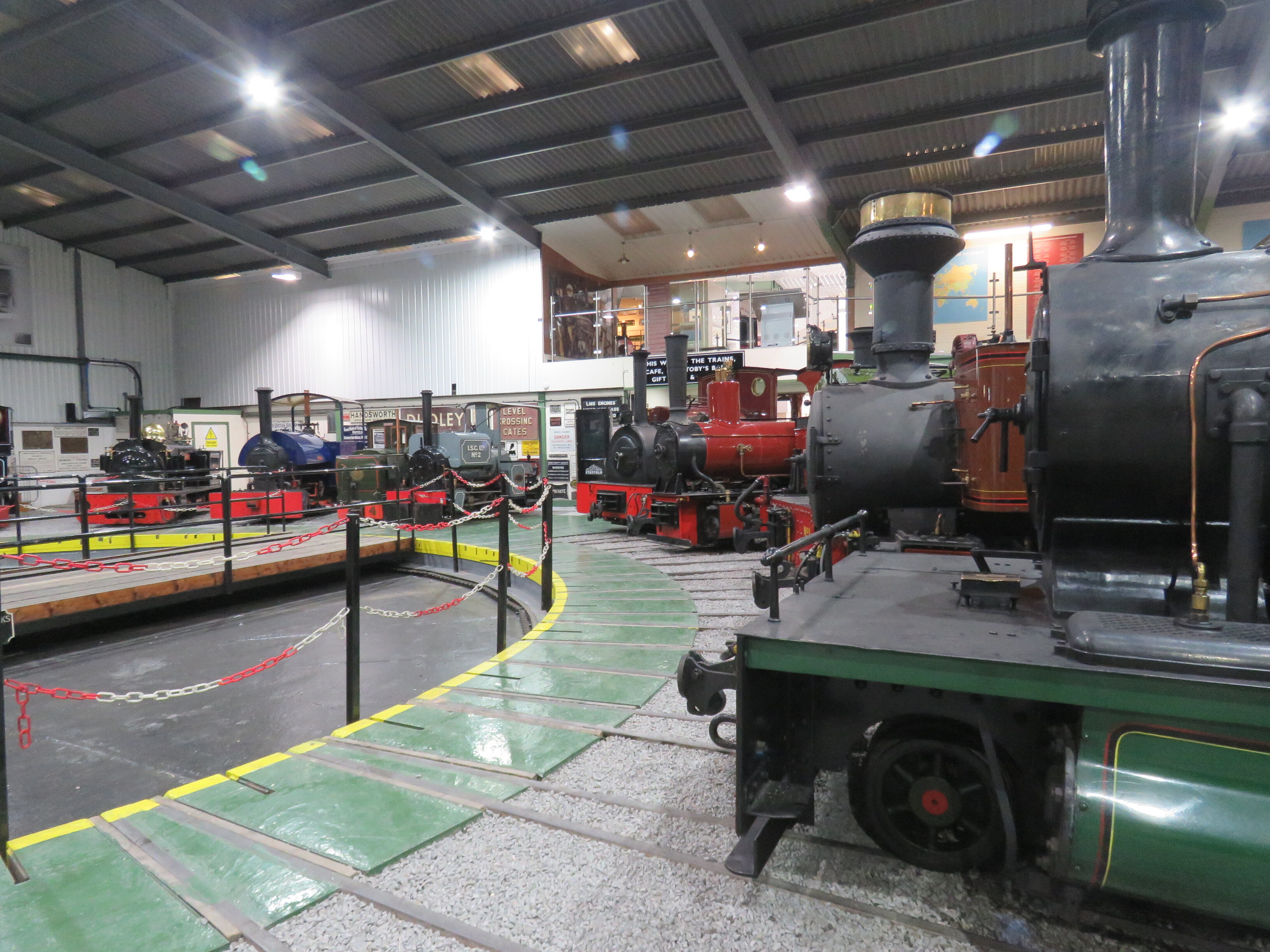 Around the turntableIn the narrow gauge roundhouse at Statfold Barn Leisure Park.